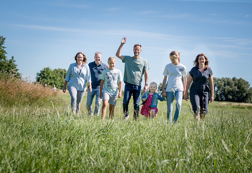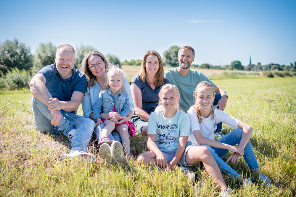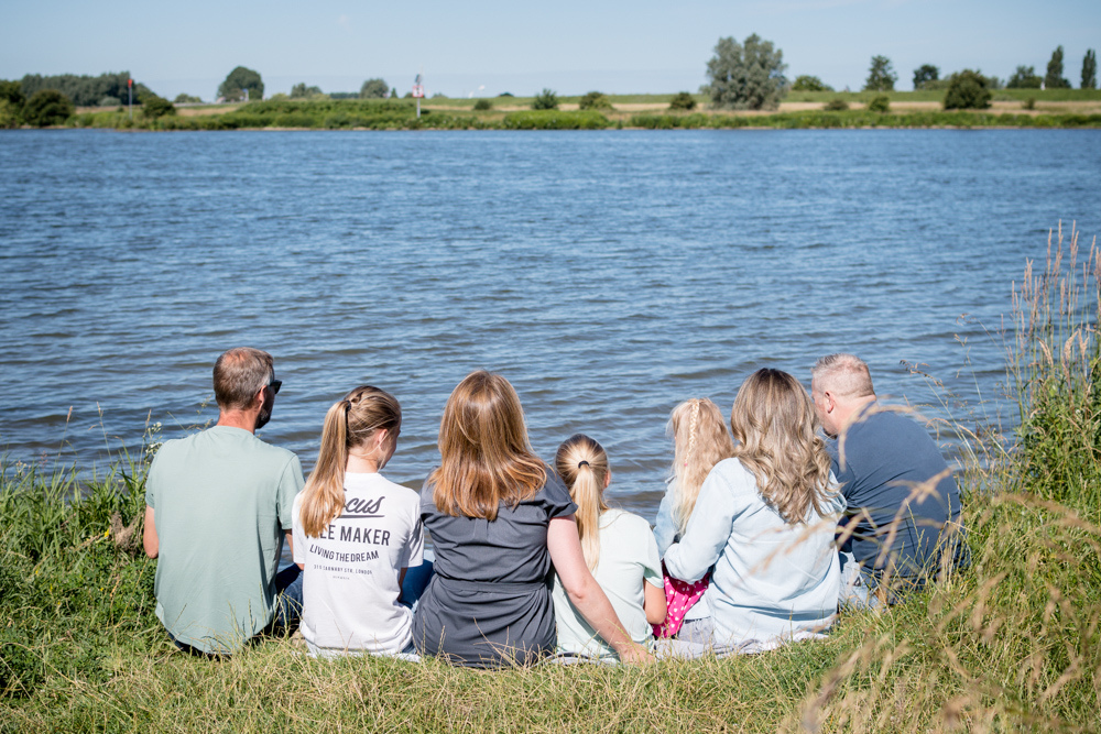 “We staan er mooi op en je voelt het weidse van de uiterwaarden en de rivier. De ’tussendoor’ foto’s zijn ook leuk. Milou, bedankt voor je flexibiliteit en snelle service met mooi resultaat! We hebben een foto groot laten afdrukken voor onze (schoon)moeder, ze was er heel blij mee.”